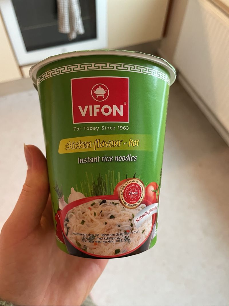 Instant rice noodles chicken flavour, hot