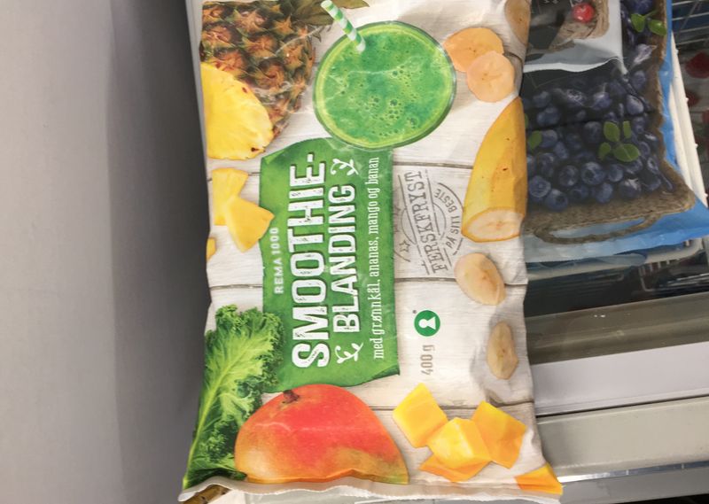 Smoothieblanding med grønnkål, ananas, mango og banan