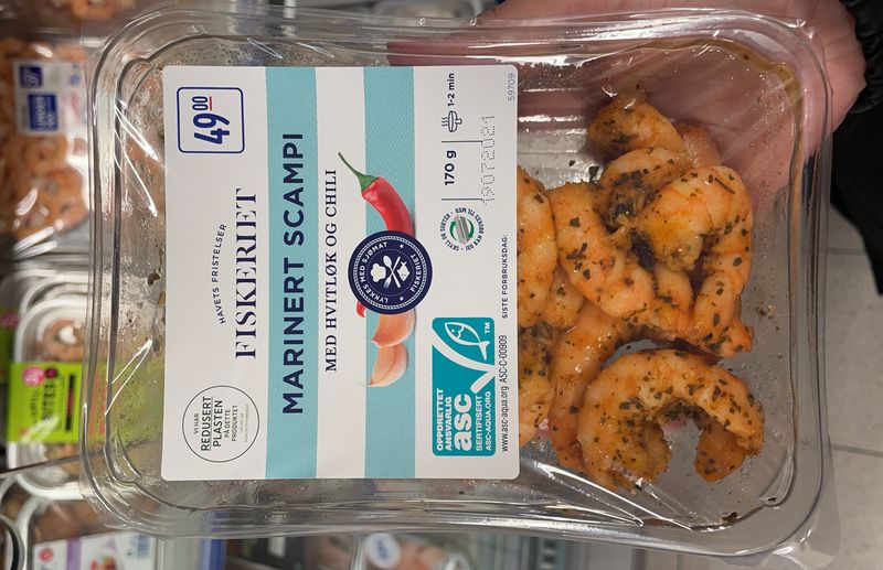 Marinert scampi med hvitløk og chili