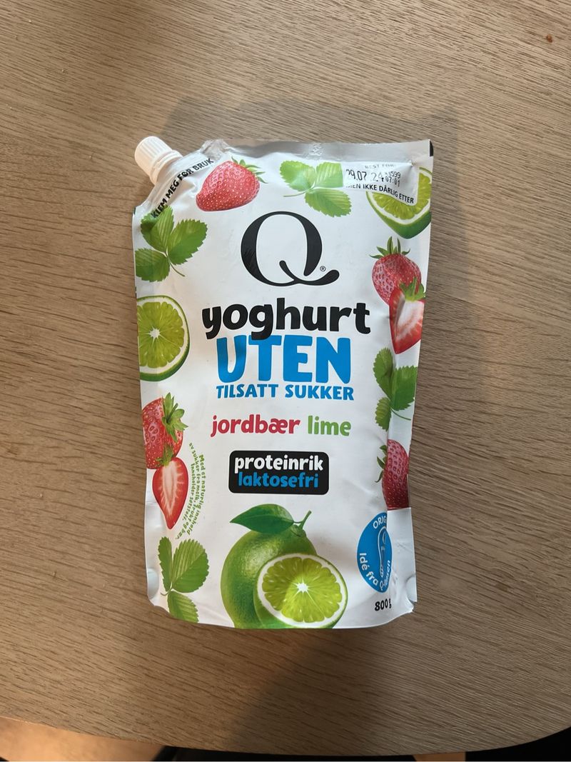Q yoghurt uten tilsatt sukker, jordbær lime