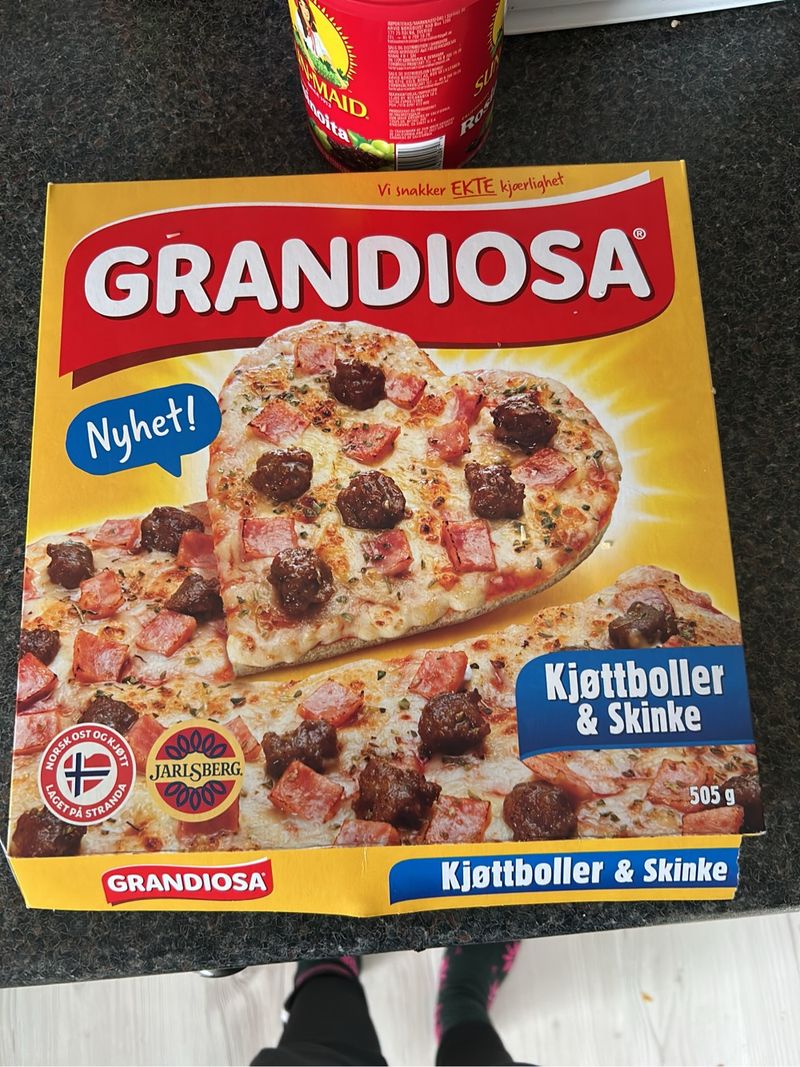 Grandiosa med kjøttboller og skinke