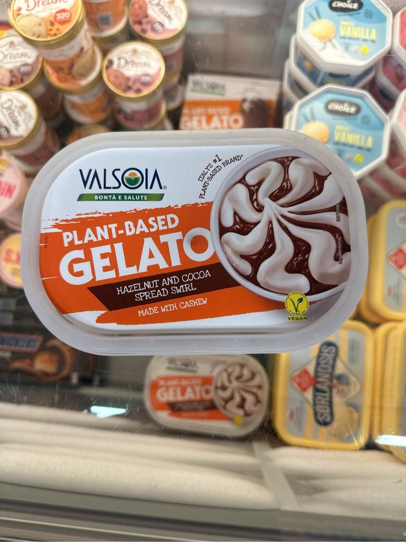 Plant-based Gelato, hazelnut and cocoa spread swirl