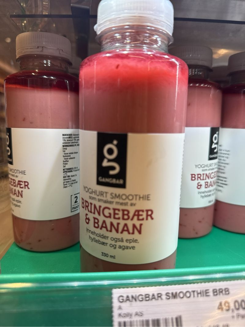 Yoghurt smoothie som smaker mest av bringebær & banan