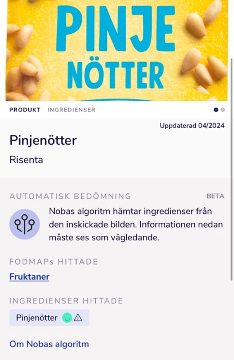 Vissa produkter har en automatisk FODMAP-bedömning, genererad av vår algoritm baserad på ingredienslistan. Detta gör det möjligt att få vägledning om produkter som ännu inte har granskats av våra registrerade dietister 👩🏽⚕️