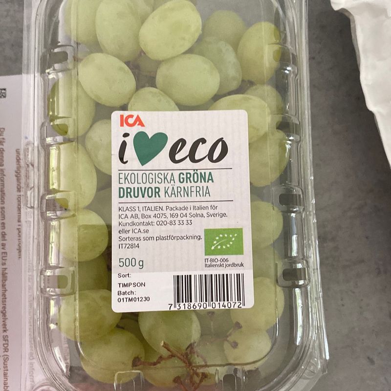 Ekologiska gröna druvor kärnfria