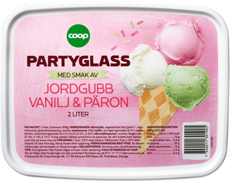 Partyglass med smak av jordgubb, vanilj og päron